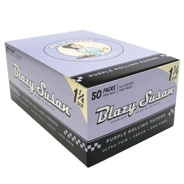 Stock up on a fan favorite with Blazy Susan 1 1/4" Purple Rolling Papers. Known for their signature color and smooth performance, these ultra-thin papers are designed to deliver a clean, even burn while adding a little personality to your roll. Each full box keeps you well supplied so you?re always ready when it?s time to roll up.
