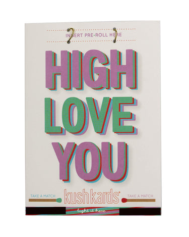 This "High Love You" card also comes with a place at the top of the card for you to tie down a pre rolled joint (full if you really care!) a pack of matches, and a strike surface for matches, at the front base of the card. Open up the card to find a blank insert to write a caring, silly, or hateful message, I really don't know how you feel about this person. It also comes with a matching envelope!