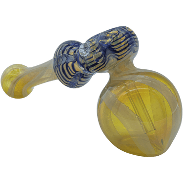 This LA Pipes The "Raked Hammer" Fumed Hammer Bubbler Pipe has the classic hammer bubbler design, made of pure silver fumed borosilicate glass and handcrafted in Los Angeles. Approx. 6" long, it cools smoke with water for smooth, enjoyable hits. Wrapped and raked in various colors, perfect for use with dry herbs.