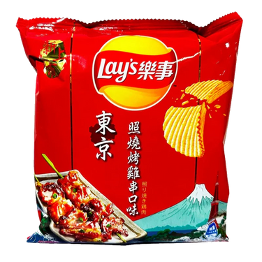 The Lay’s Yakitori Grilled Chicken Flavor Chips is a snack food product that consists of thinly sliced potatoes fried until crispy, seasoned with a savory blend of yakitori-inspired flavors, and packed in a 34g bag, made in China.