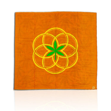 This machine washable towel is made of 100% cotton terry velour and features a brightly colored reversible design with cannabis leaves on one side and My Bud Vase's Flower of Life symbol on the other.