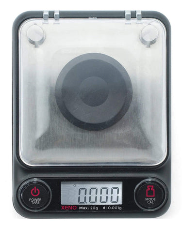 A true powder scale, the Truweigh Xeno Digital Milligram Scale, has a high precision sensor for truly accurate and reliable measurements. This compact scale is accurate, easy to use, easy to read, and stores easily in many travel bags.